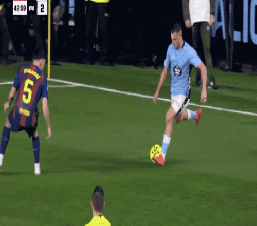 第43分钟,塞尔塔卷土重来,巴萨的防线再次出现漏洞,禁区弧顶无人盯防,伊格莱西亚斯破门得分。