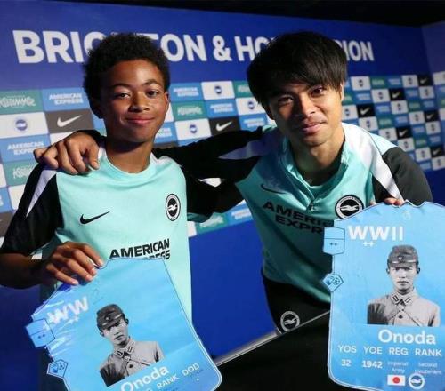 布莱顿俱乐部青训学院的X账号11月27日发布一篇祝贺帖,称其U12梯队赢得了英超联赛教育项目,将前往比利时参加“圣诞休战杯”,并配上了一张小球员与三笘薰的合照,两人手持印有小野田宽郎身着军装照片的卡片。