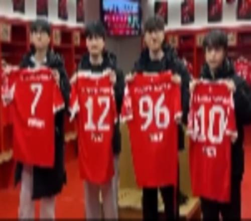 体育资讯12月4日称 T1分享动态:选手们在拜仁主场手持球衣合照。
