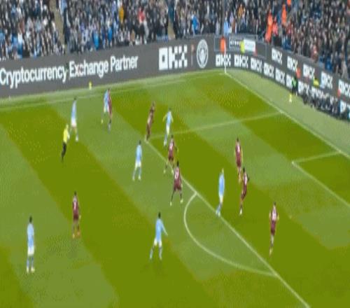 第22分钟,福登右路角球送到后点,格瓦迪奥尔无人盯防头球冲顶,继续高出横梁。